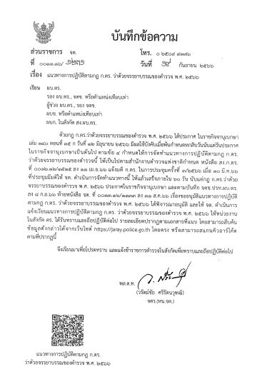 แนวทางการปฎิบัติตามกฎ ก.ตร.ว่าด้วยจรรยาบรรณของตำรวจ พ.ศ.2566